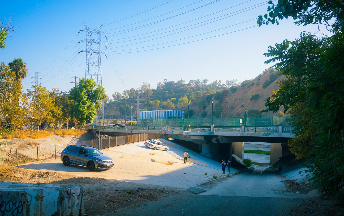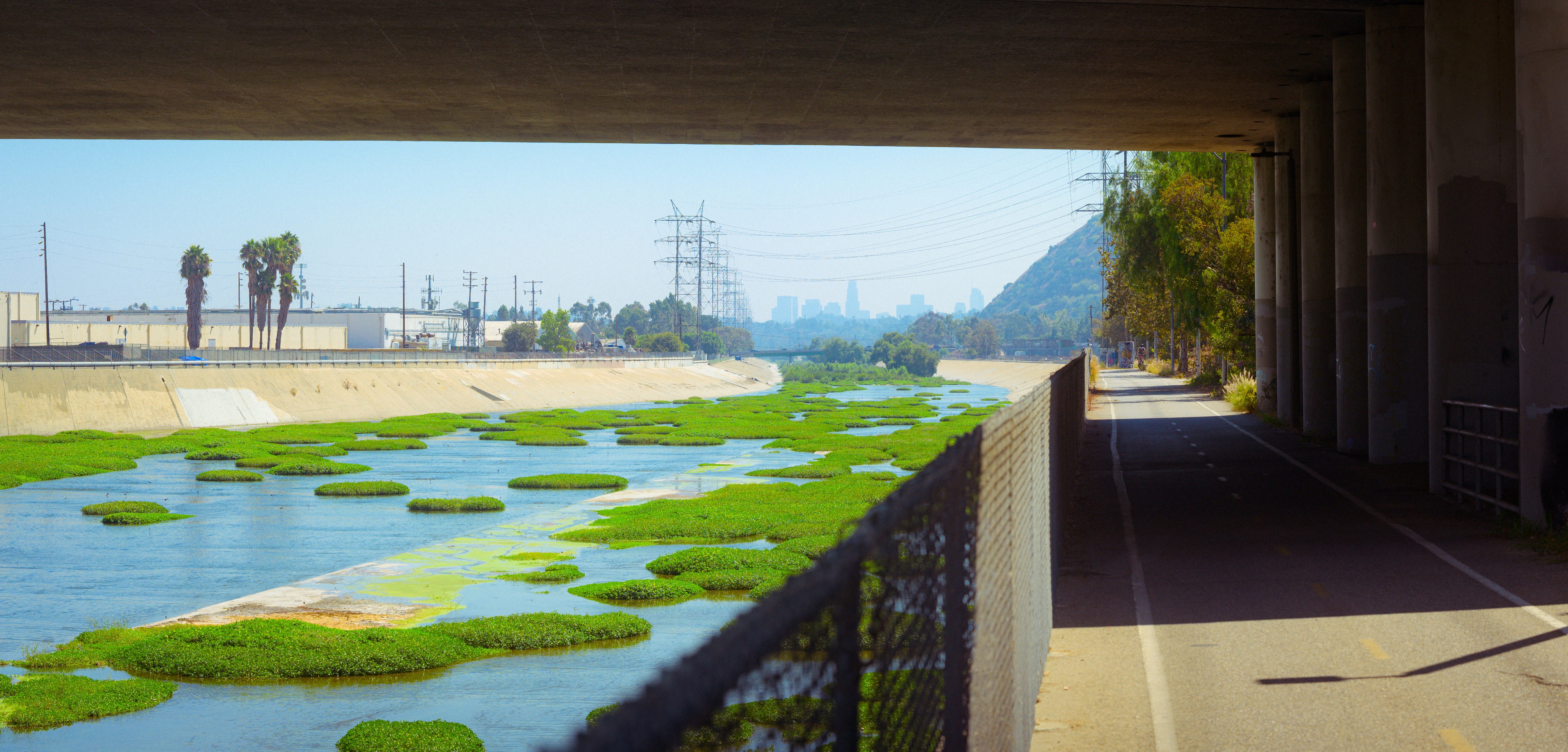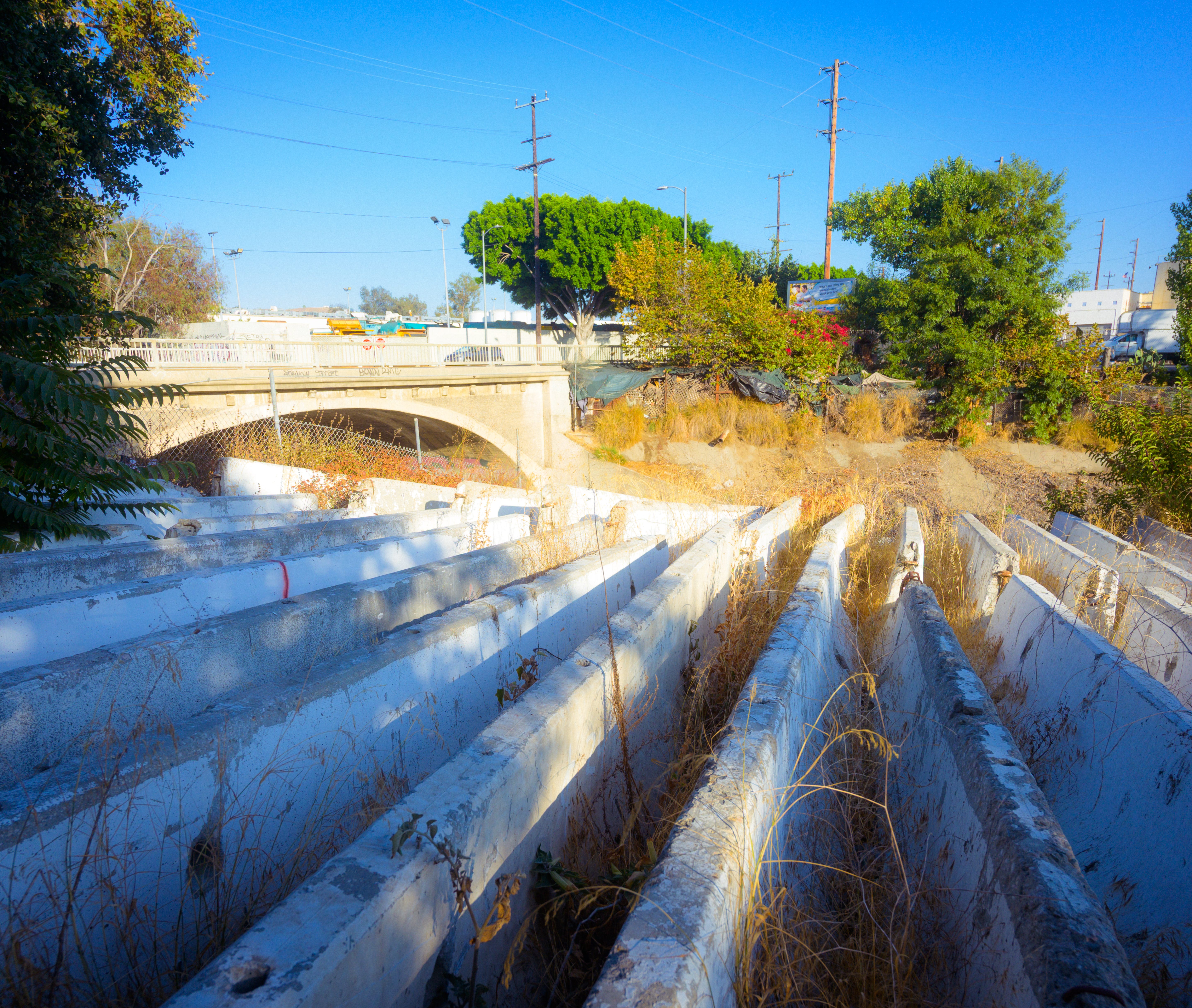 The product of an ongoing revegetation project, the narrows of the LA River - cutting Griffith Park to the left, and Glendale to the right - have sprouted an uncanny ecology. Mats of reeds and cottonwoods paint only an impersonation of nature, hemmed in by concrete gutters.