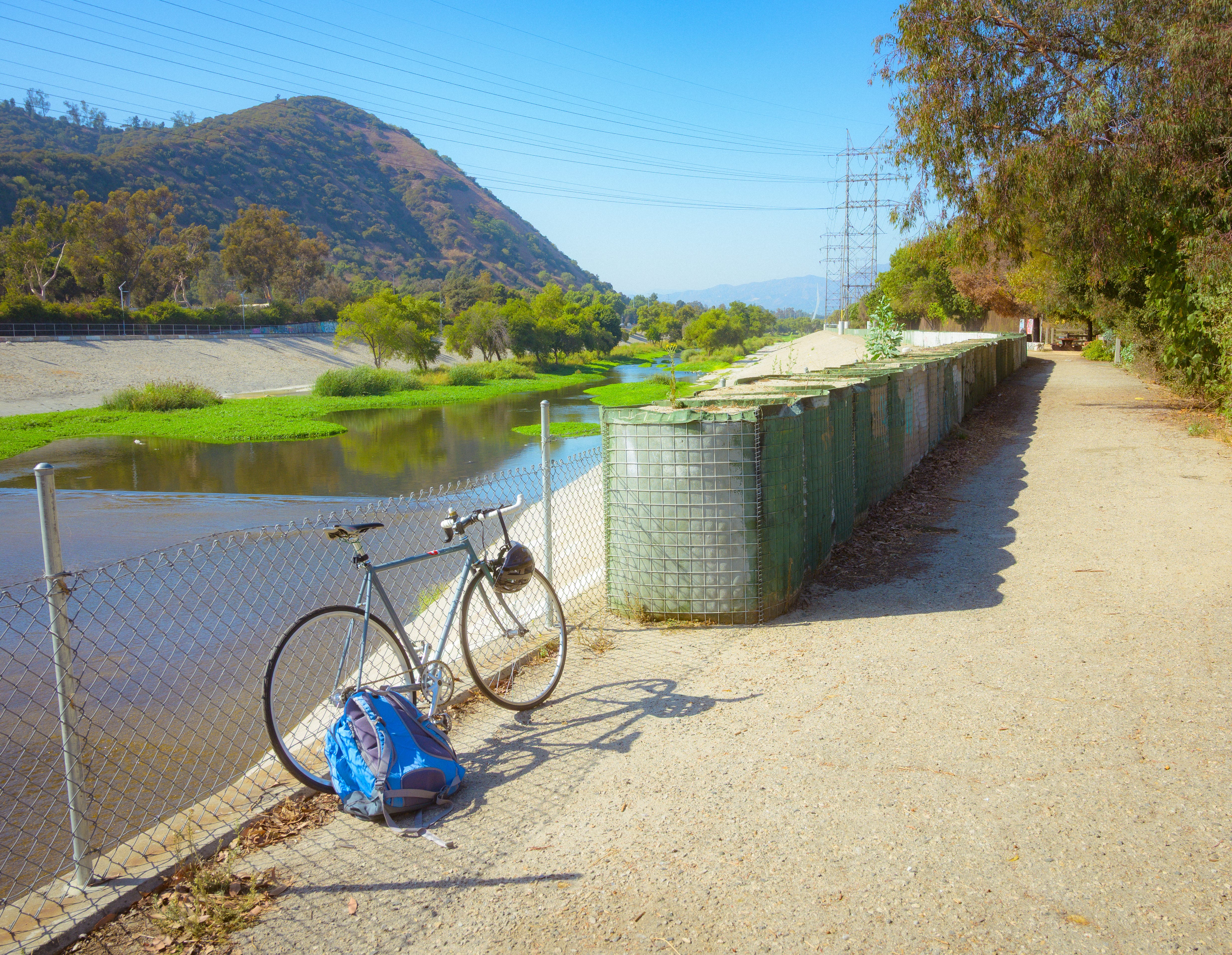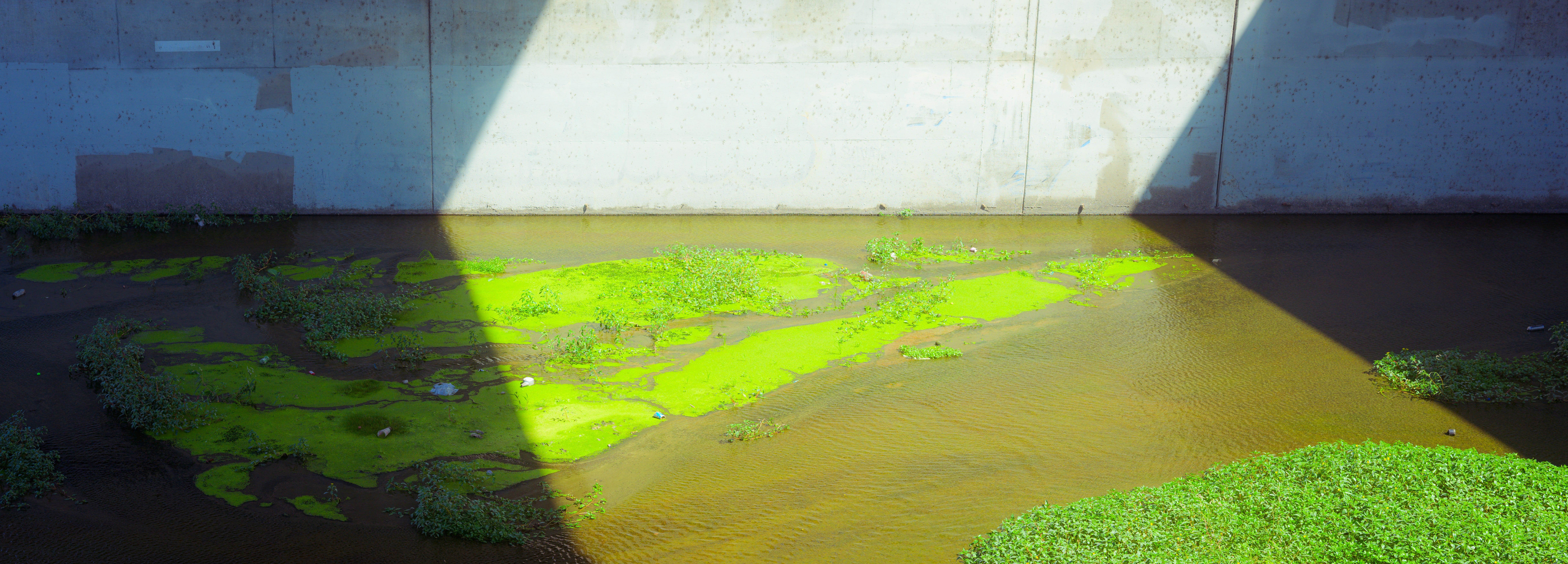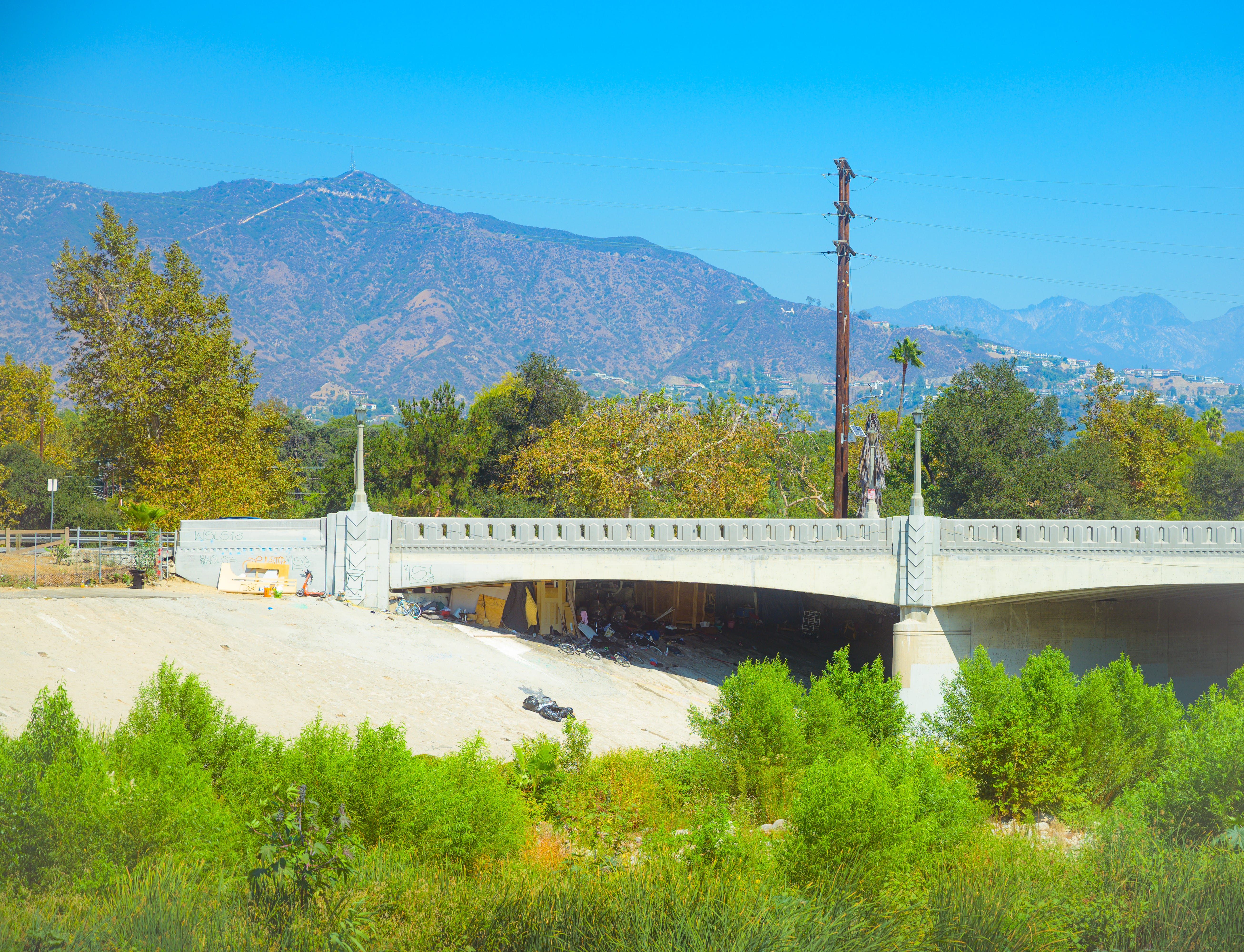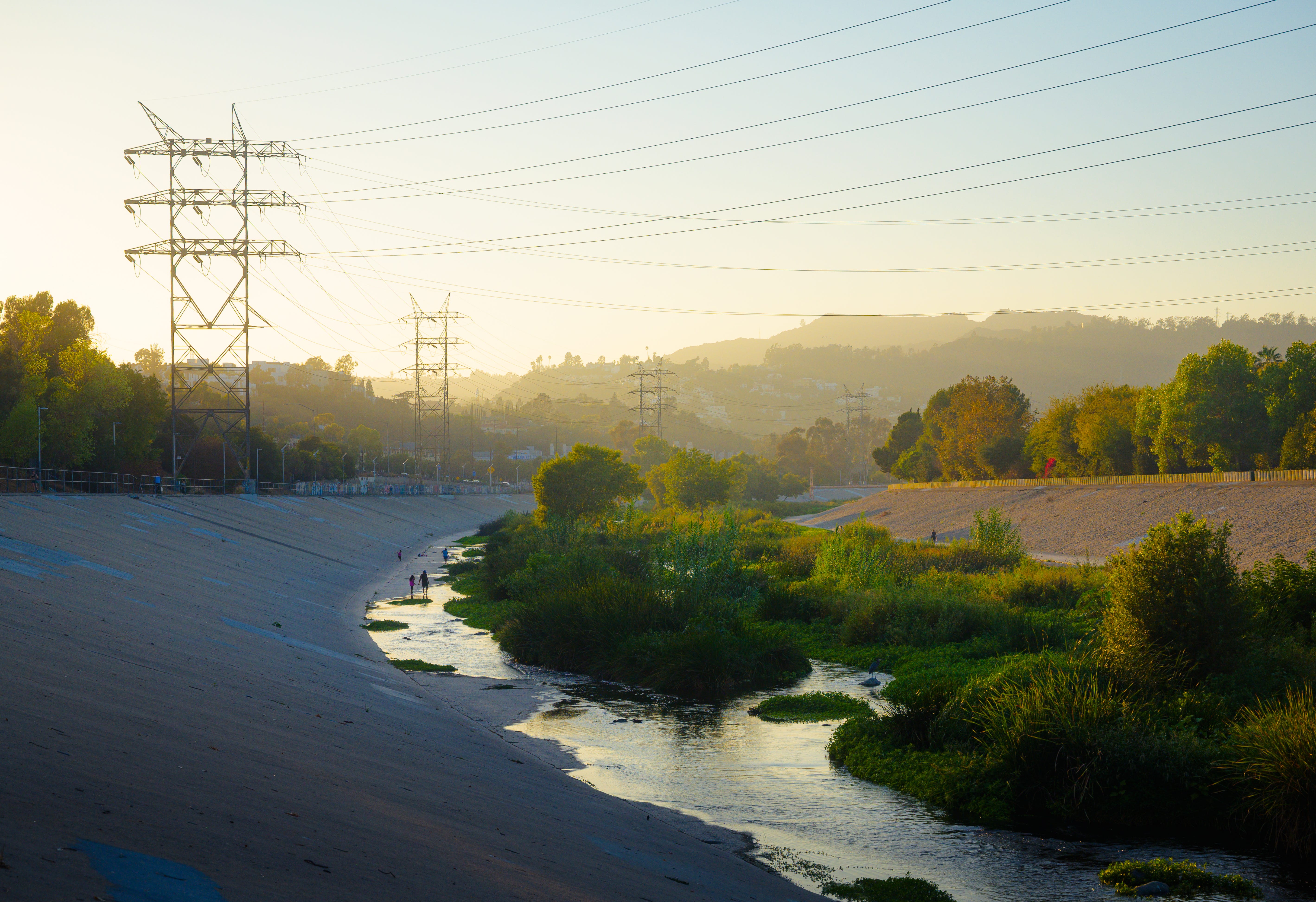 The product of an ongoing revegetation project, the narrows of the LA River - cutting Griffith Park to the left, and Glendale to the right - have sprouted an uncanny ecology. Mats of reeds and cottonwoods paint only an impersonation of nature, hemmed in by concrete gutters.
