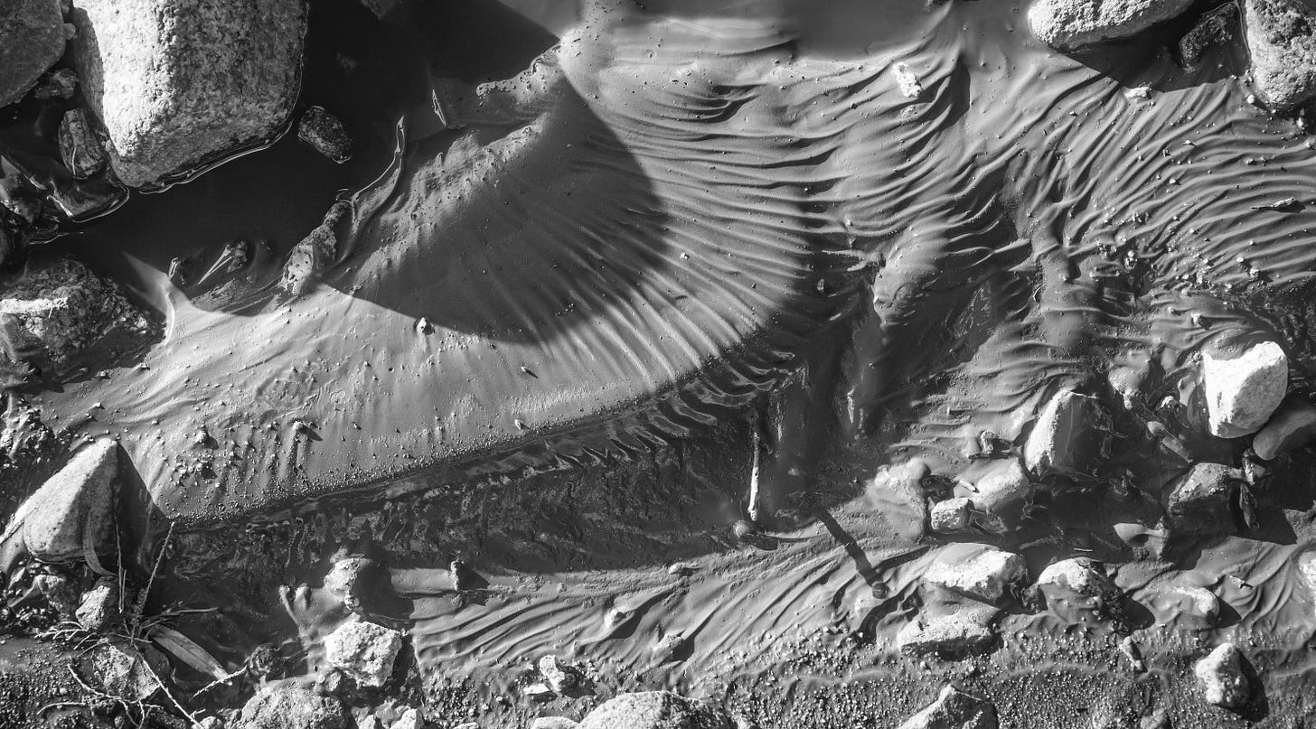 Ash & soot from the 2003 El Dorado Fire settles out of flow along the Santa Clara River’s banks above Redlands. The river resurrects the long-dead smell of smoke, kicked up in spray from rapids along its course.
