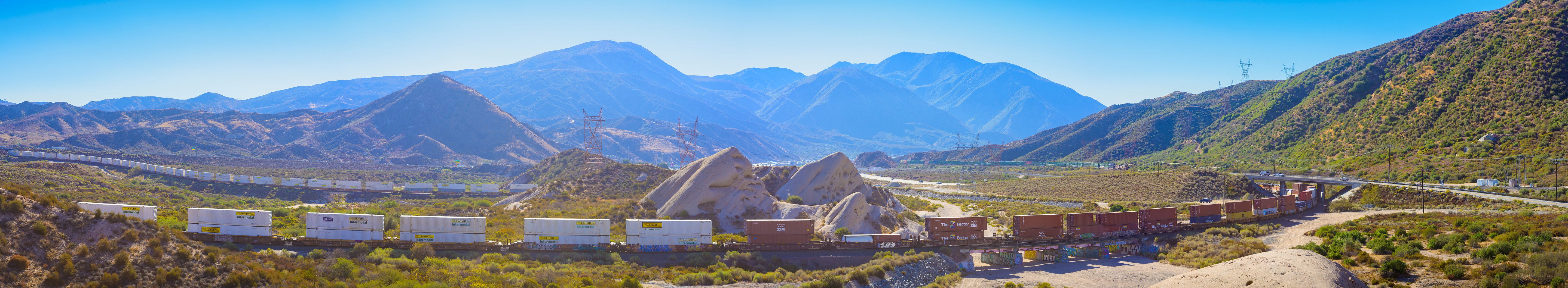 The Empire Builder is returning east, climbing steadily through Cajon Pass, north of San Bernardino, and up into the Mojave Desert. Vital corridors like this, and Banning Pass - pictured above - are key linkages to the Asian trade markets which predominantly ship into Long Beach’s ports.
