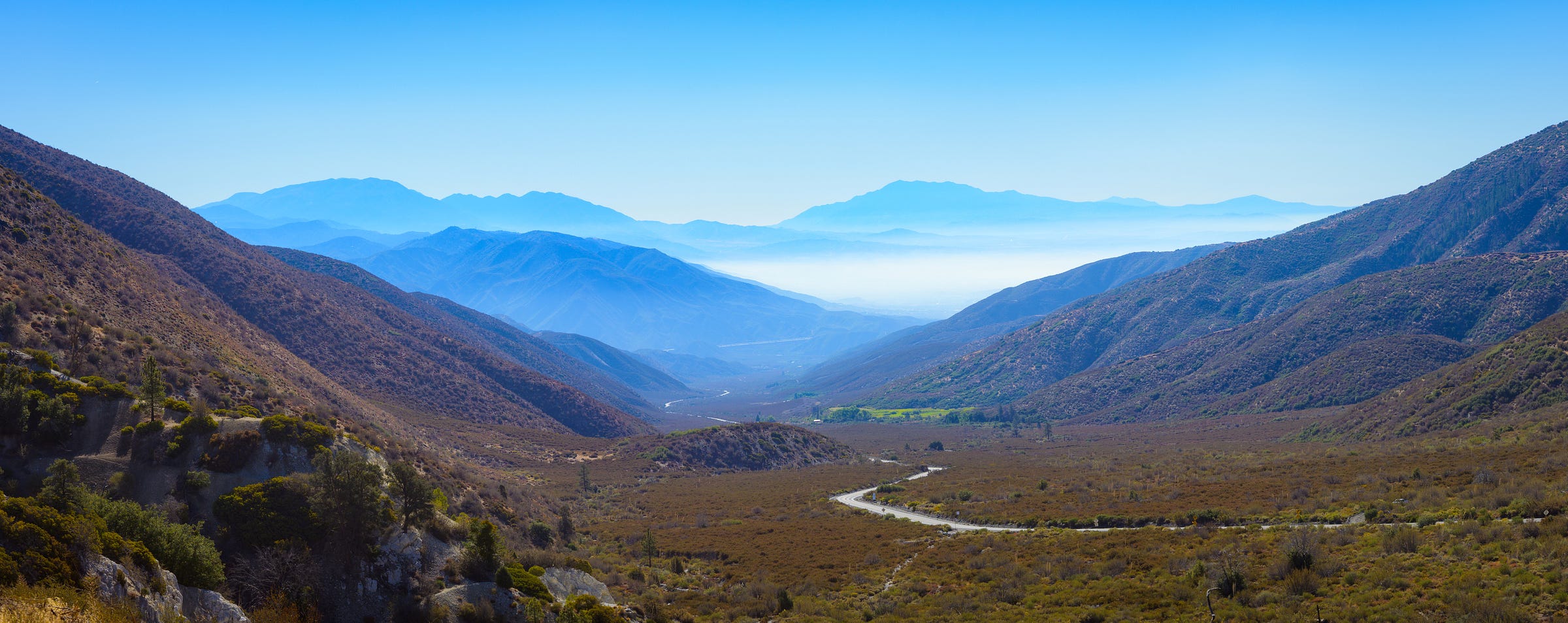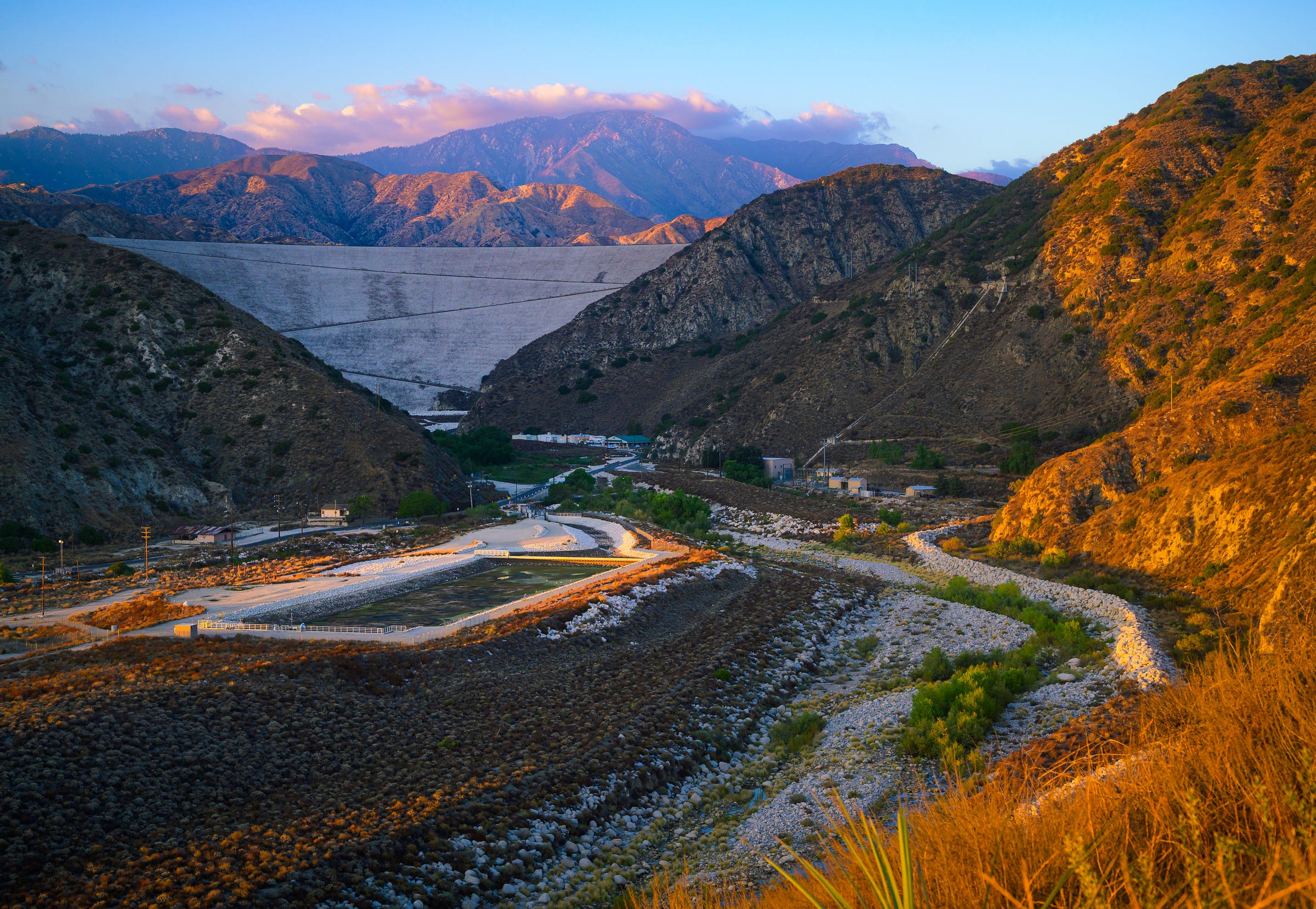 The San Gabriel Mountains crash like waves above the city. Pasadena sits between them and the foreground’s hills. Networks of streets, cell towers, and powerlines slither up and over each rise.