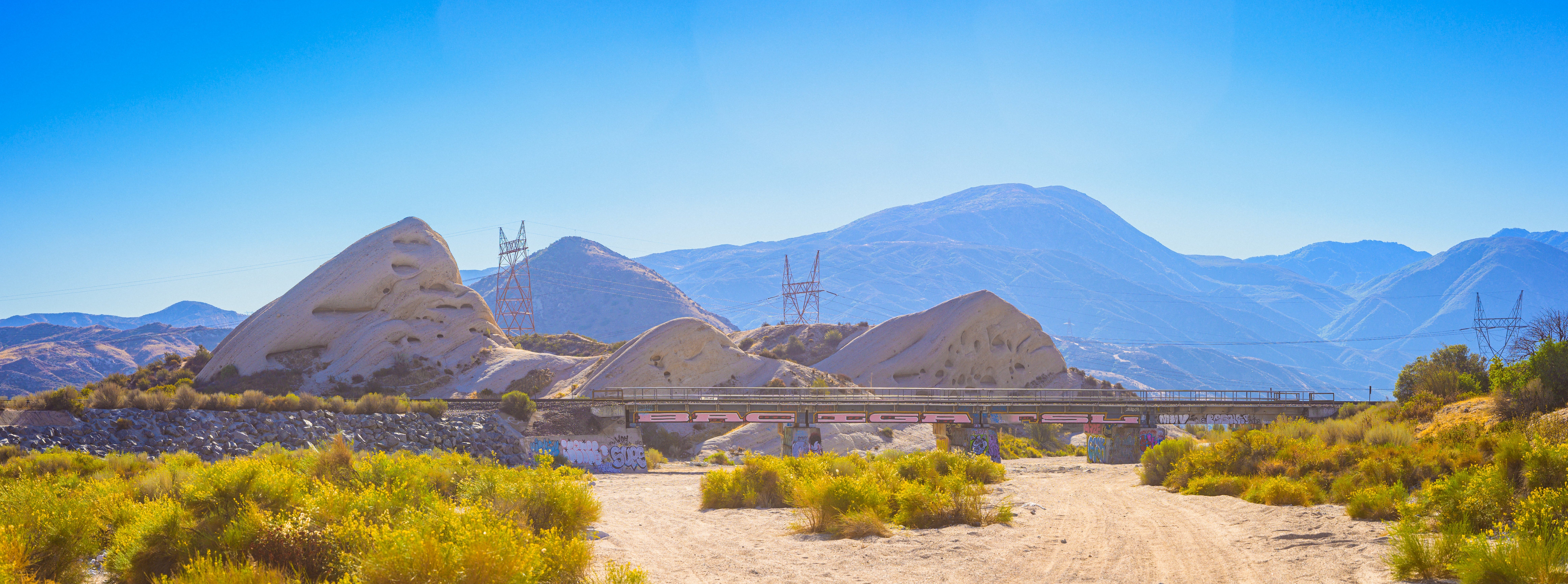 Old granite domes, the corpses of once-warm blooded magma chambers, are sheared apart near Mt. San Jacinto. The San Andreas crumples up land in this area of the Inland Empire as huge blocks of rock wedge themselves through a tectonic chokepoint.